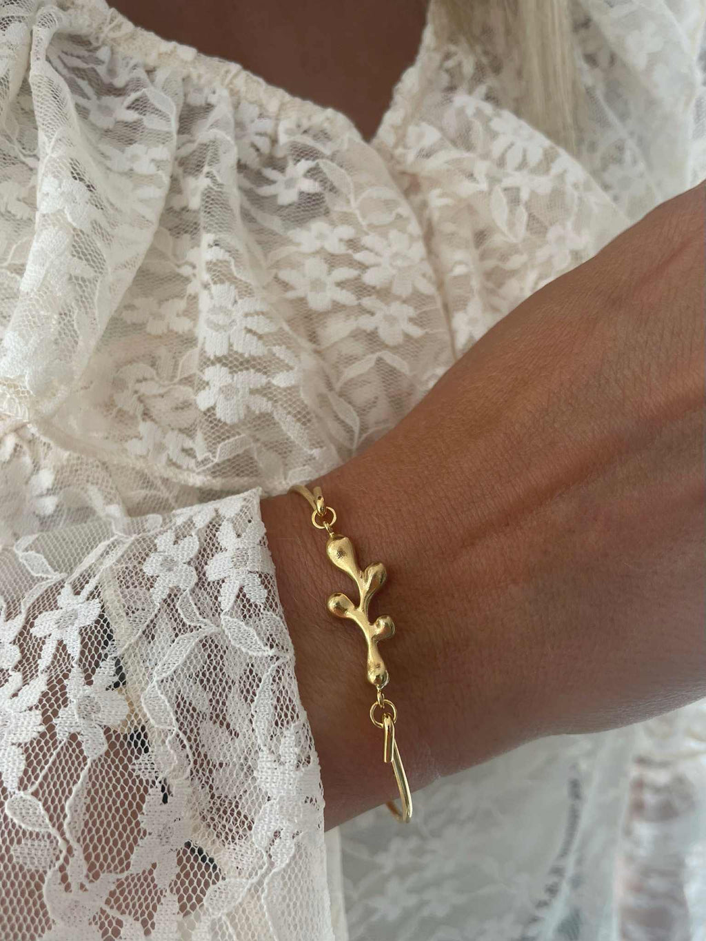 Der Armreif wird aus vergoldetem oder rhodiniertem Sterlingsilber hergestellt.