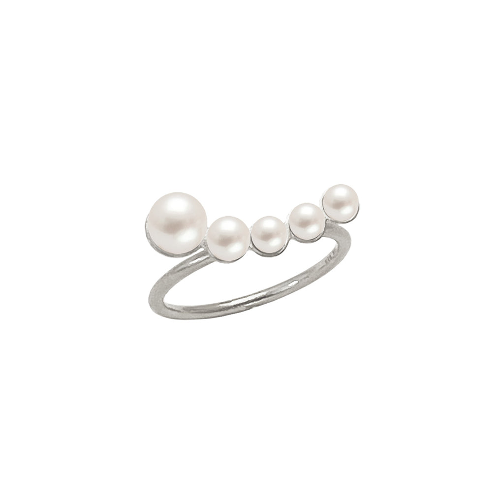 LUNA Ring aus Sterlingsilber mit 5 Perlen in den Größen 5 mm, 4 mm und 3 x 3 mm.