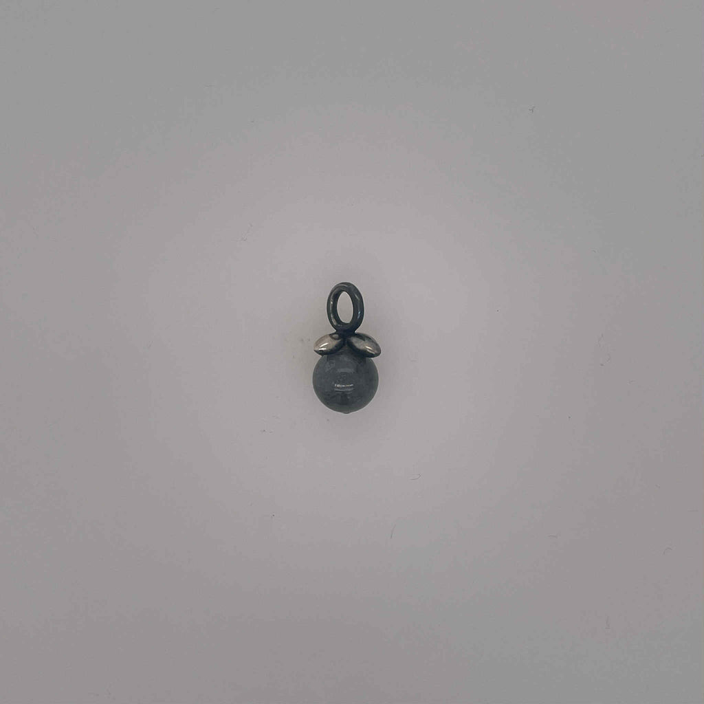 Flower pendant in polished sterling silver with oxidized details and 8mm black burma jade.