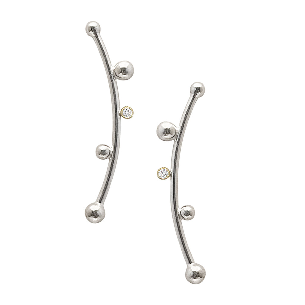 LUNA earring in sterling silver with bullets in sizes 2 x 4 mm and 2 x 3 mm and 0.02 ct. brillant cut diamond in 18kt. gold-setting.
