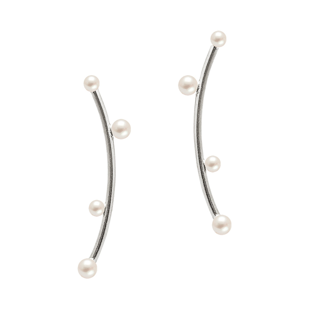 LUNA earring in sterling silver with white freshwaterpearls in sizes 2 x 4 mm and 2 x 3 mm.