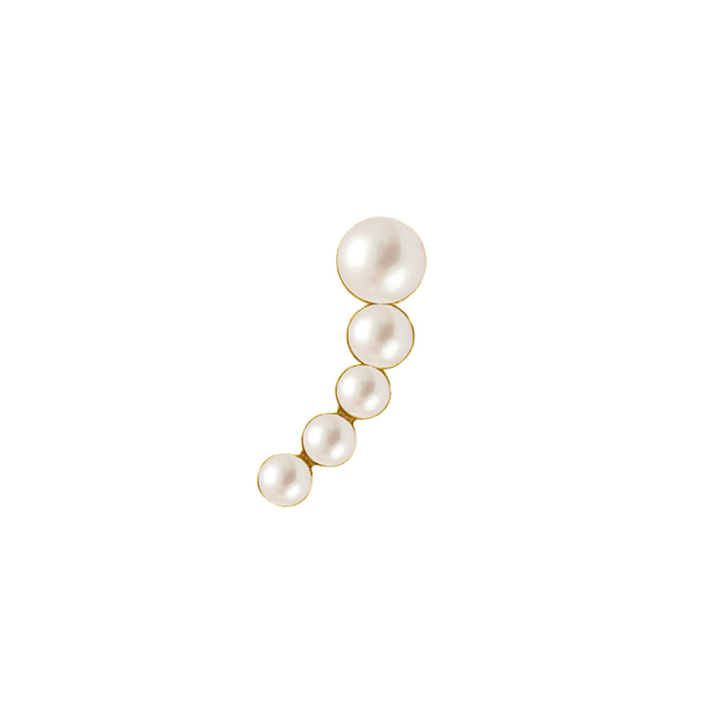 Single LUNA earring in sterling silver with white freshwater pearls in sizes 5 mm, 4 mm and 3 x 3 mm.