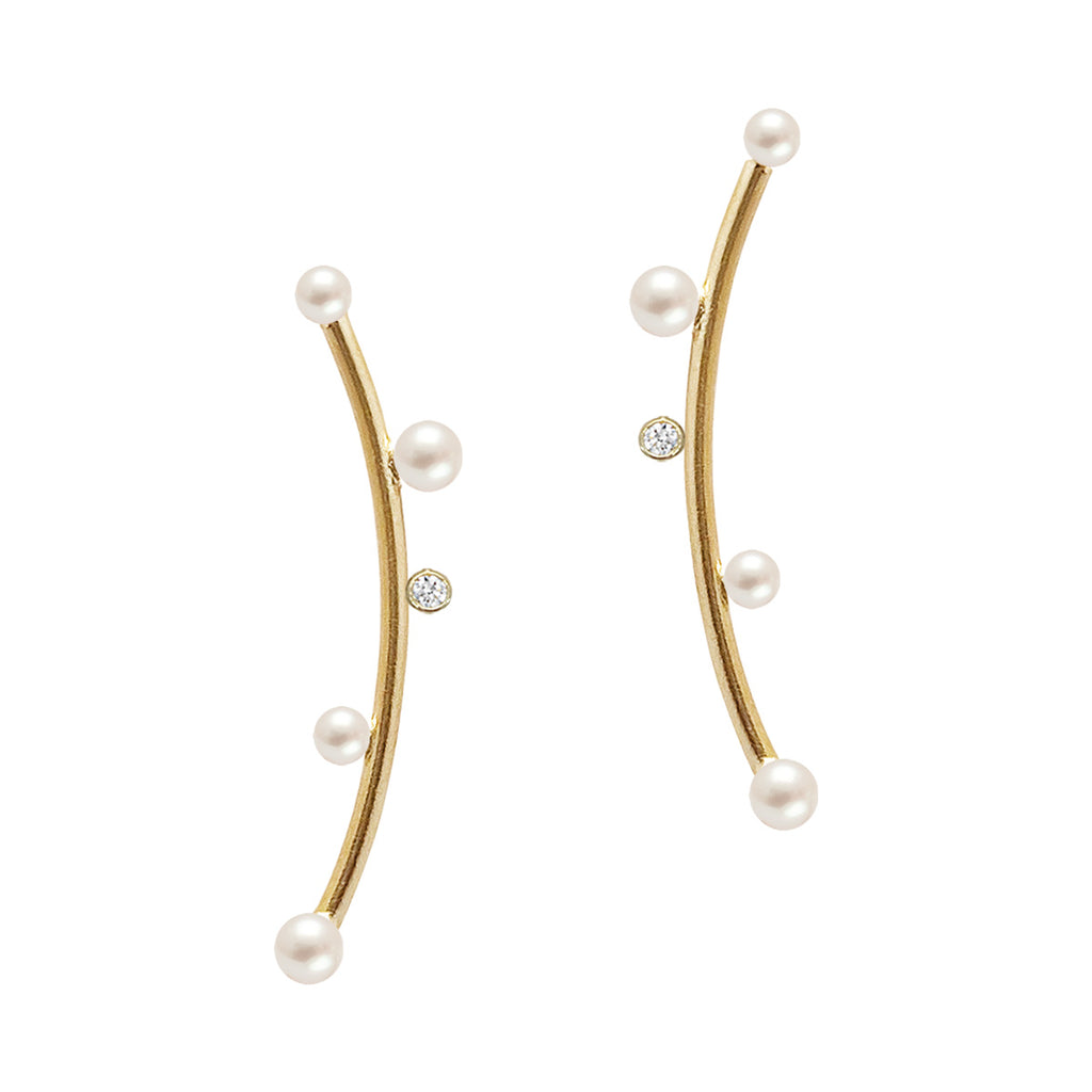 LUNA earring in sterling silver with white freshwater pearls in sizes 2 x 4 mm and 2 x 3 mm and 0.02 ct. brillant cut diamond in 18kt. gold-setting.