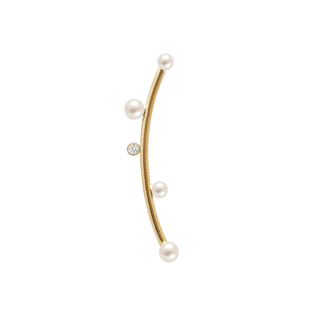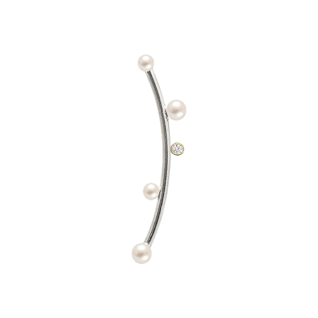Single LUNA earring in sterling silver with pearls in sizes 2 x 4 mm and 2 x 3 mm and 0.02 ct. brillant cut diamond in 18kt. gold-setting.