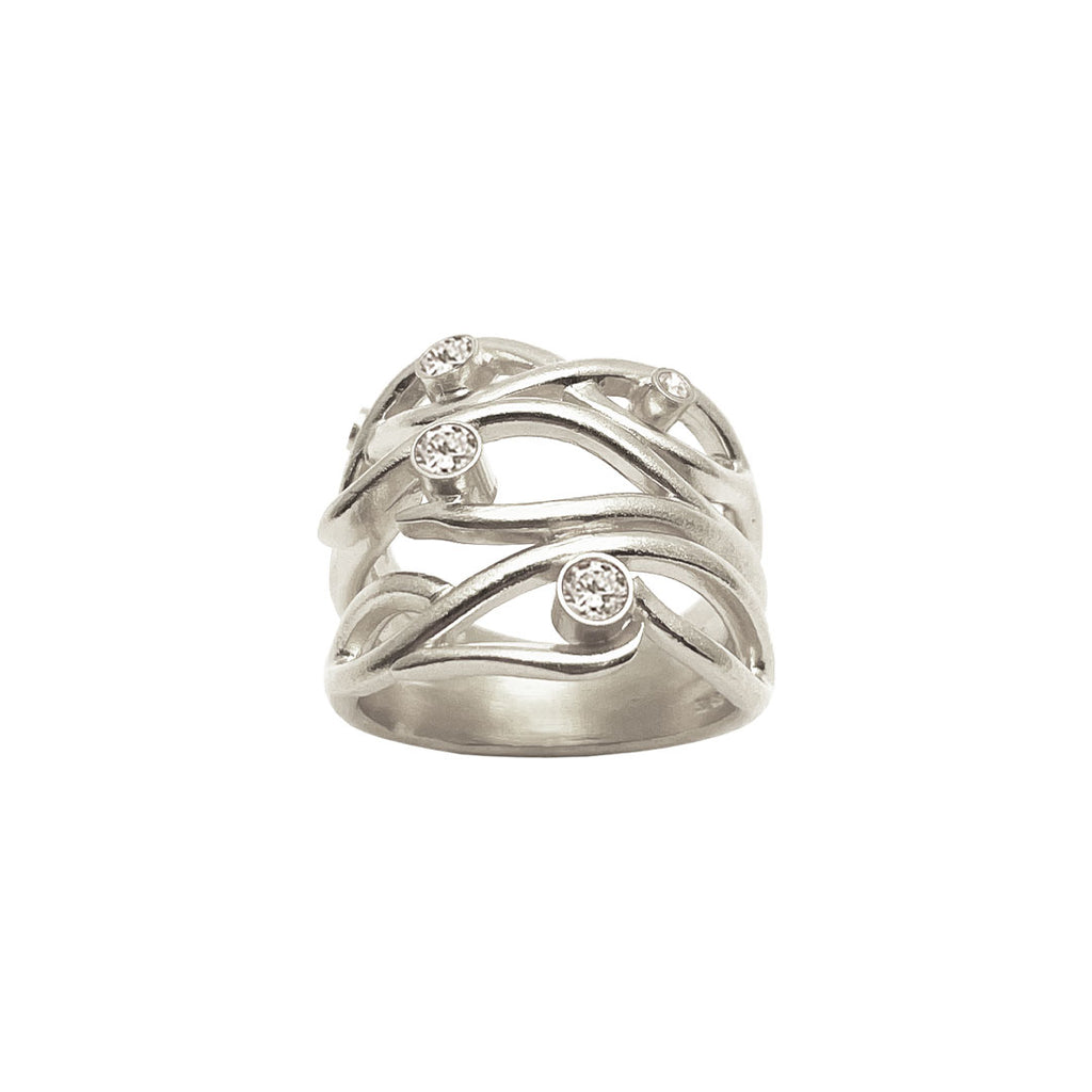 Lumi ring wide in sterlingsilver with 5 zirconia.